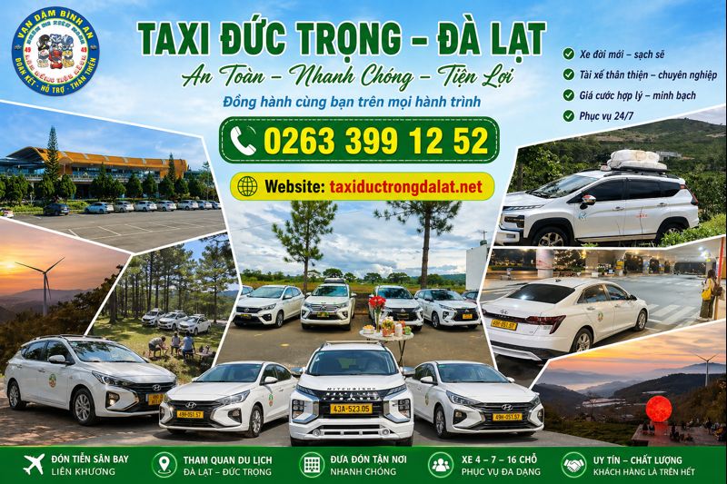 Taxi Đà Lạt Lâm Đồng là dịch vụ di chuyển tiện lợi, hỗ trợ đón tận nơi tại trung tâm, hồ Xuân Hương, bến xe và chợ Đà Lạt. Xe 4–7 chỗ sạch sẽ, phục vụ 24/24, phù hợp đi nội thành, sân bay Liên Khương và các tuyến đường dài. Gọi 02633 991 252 để đặt xe nhanh, giá rõ ràng.
